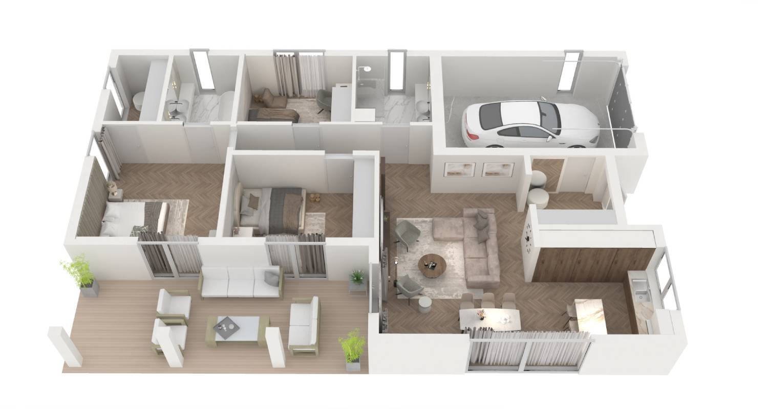 - Name suplanuota 51 kv.m. virtuvė su svetaine, 2 vonios kambariai, 3 miegamieji kambariai;